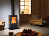A compact and efficient wood-burning stove with contemporary styling and three-sided flame views, ideal for both modern and classic interiors.