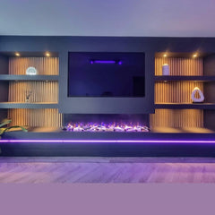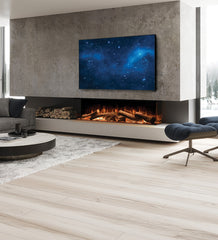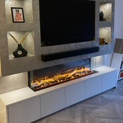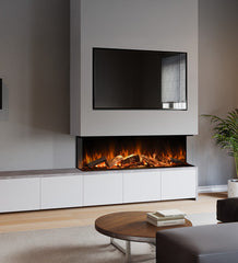 E2000 Icona panoramic 3 sided deep display E2000mm / 79inch wide electric media wall fire App & Alexa controlled