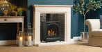 The stove is easy to control with a simple slide lever located below the glass screen. It features a light weight aluminium casting which provides crisp and clean lines, aesthetics are at the heart of this product. The fire incorporates under-log burners to provide the most realistic effect, with a unique turndown feature allowing the rear burners to be turned off independently to keep the flame picture alive when running on low. And, just like the Ravel 400C, it can be installed into Class 1, Class 2 and precast flues*. The Ravel 400T is also available as a balanced flue model (Available from Winter 2023, see pages 48-49) . The Asti Chamber Suite is available to order as a complete package, a wide variety of chamber designs are available, including charcoal or olive waterfall slate, staggered black or oyster slate and a variety of brick or limestone designs. Ask your retailer for details.