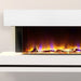At its heart is the Electriflame VR 3-sided flame effect, offering a panoramic view of flickering flames that appear to dance from the front, centre, and rear of the fire bed. Naturally crafted ceramic logs rest atop crystal ash embers, glowing with rich hues of orange, red, blue, and yellow—creating an illusion so realistic it challenges your perception of fire.