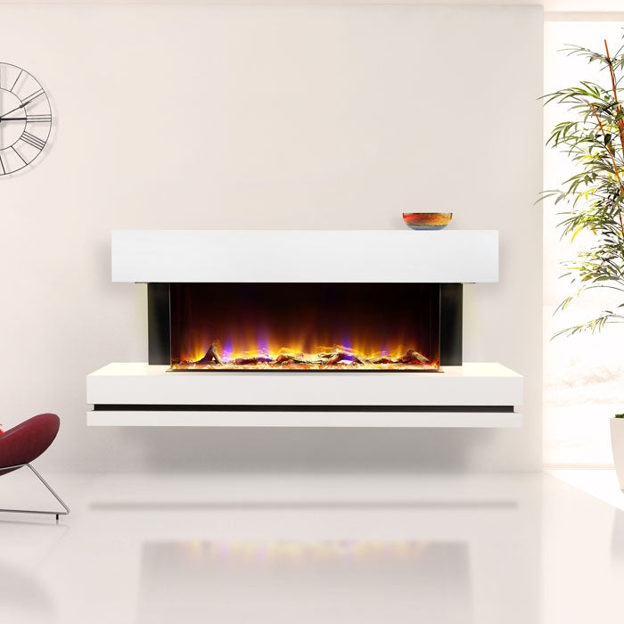 The Celsi Electriflame VR Volare 1100 is a bold and contemporary wall-mounted electric fireplace suite, designed to transform any room into a warm, stylish retreat. Featuring a crisp white surround with a contrasting black back panel, and a sleek glass-fronted design, the Volare 1100 delivers visual impact with elegant minimalism.