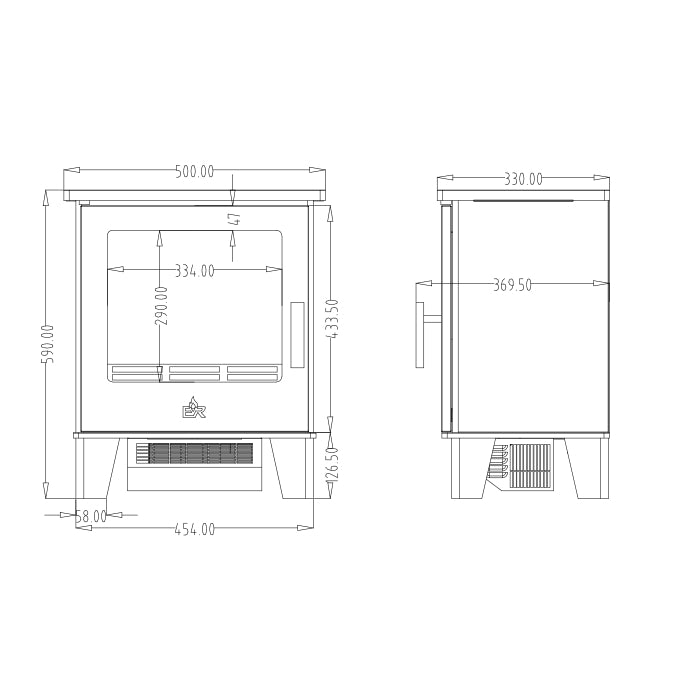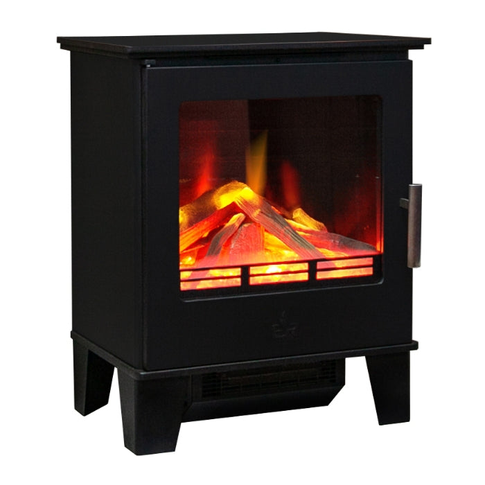 The Electristove VR Stratford is freestanding and requires no chimney, gas supply, or ventilation. It can be positioned on any flat surface and is suitable for installation on a 12mm hearth. As an electric appliance, it produces no emissions and meets modern energy and safety standards.