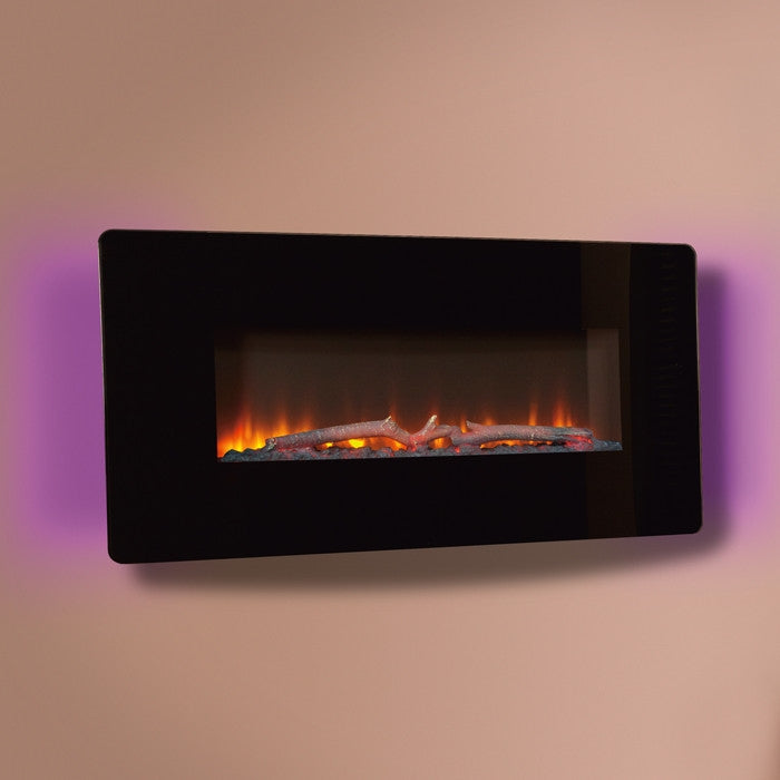The Celsi Flamonik Enchant Electric Fire offers a bold, wall-mounted design with a sleek black glass fascia and vivid LED lighting. Perfect for contemporary interiors, it combines a captivating flame effect with colour-changing mood lighting, making it a true statement piece — with or without the heat.