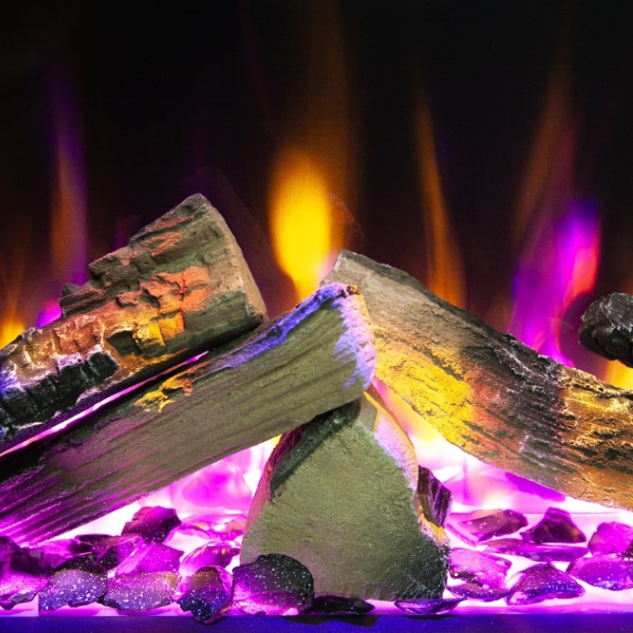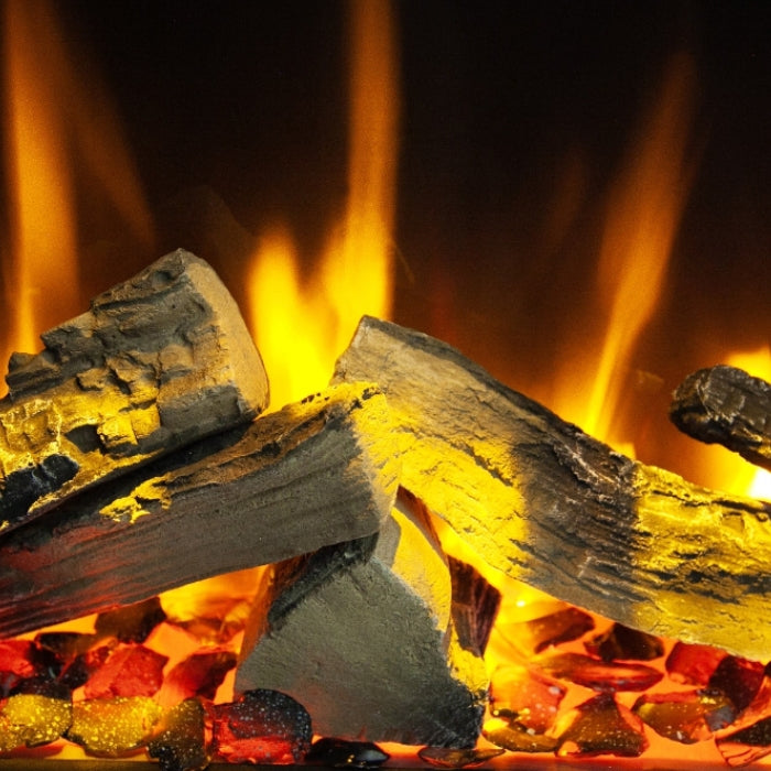 | Fuel Bed | Realistic ceramic logs over crystal embers |
