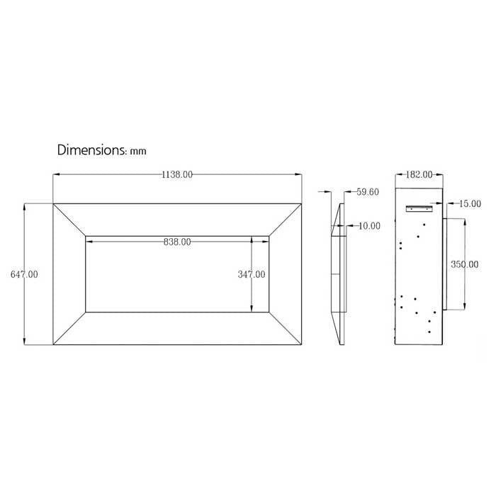 Dimensions (W x H x D) 1138mm x 647mm x 182mm (inset depth)