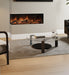 The fireplace also features eleven unique flame animations, allowing you to adjust the intensity and movement of the flames. From a gentle flicker to a more dramatic, roaring blaze, you can tailor the effect to suit your mood and space. Complement the effect with ambient overbed illumination, which casts a soft, inviting glow, further enhancing the overall atmosphere.