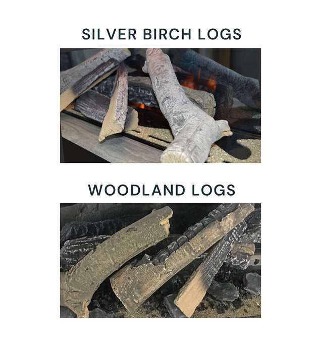Customisable Log Sets: Personalise your fireplace by selecting between woodland or silver birch logs.