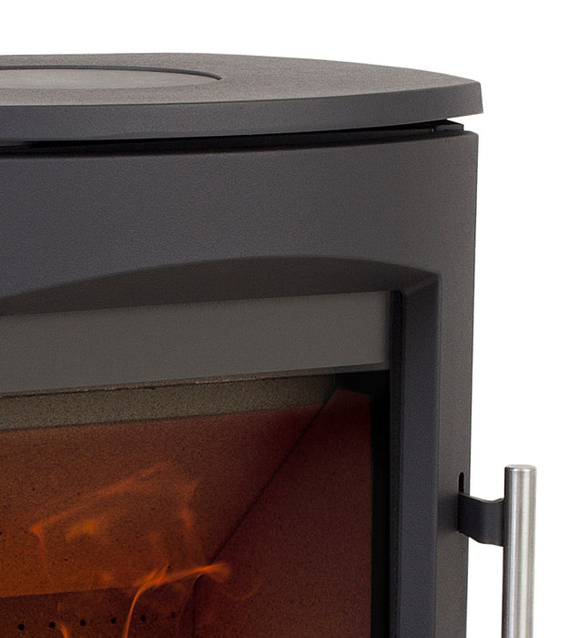 This stove is DEFRA approved for use in smoke control areas across the UK. It’s suitable for installation on a 12mm hearth and features both top and rear flue outlet options to suit a variety of installation needs. The flue can be swept through the stove, making routine maintenance more straightforward. With clearances of just 100mm at the sides and rear, it’s also a practical choice for rooms with space limitations.