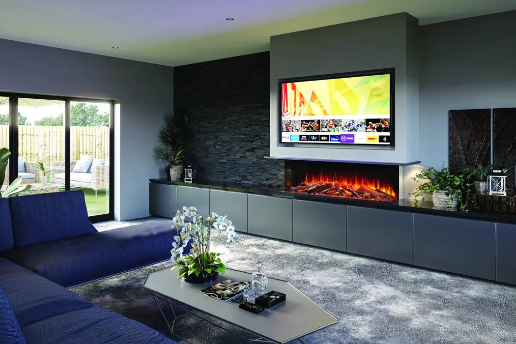 Discover the LUX 150 at our Manchester showroom where you can experience its realistic flame effects and immersive audio firsthand. We provide UK-wide delivery and comprehensive support, helping you bring this elegant fire into your home.